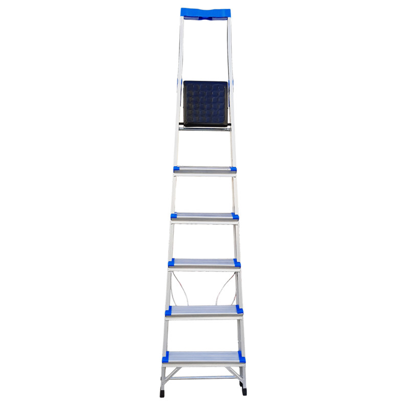 نردبان 6 پله مدل کیهان با استفاده از پروفیل مقاوم تحمل وزنی بیش از 150 کیلو را برای فرد میسر ساخته است. این نردبان نسبت به نردبان های هم رده ی خود با همین تعداد پله از بیشترین ارتفاع در پله آخر برخوردار است که ارتفاع آن در حالت باز شده از زمین تا آخرین پله معادل 160 سانتی متر می باشد. رنگ این نردبان الکترواستاتیک است و از جوش CO و از سیم فولادی در کناره های بدنه، برای استحکام بیشتر نردبان استفاده شده است. پله ی بالایی این نردبان پهن تر از سایر پله ها بوده که استفاده ی طولانی مدت را برای فرد راحت تر می سازد. بیشتر ما زمانی که از نردبان استفاده میکنیم، در صورت نیاز داشتن به ابزار مختلف یا از فردی دیگر درخواست کمک میکنیم و یا خود مجبور به پایین رفتن از نردبان میشویم. اما نردبان پنج پله کیهان با داشتن یک سینی پلاستیکی مخصوص ابزار در قسمت بالای خود، این مشکل را رفع کرده و زمان انجام کار را کاهش می دهد.