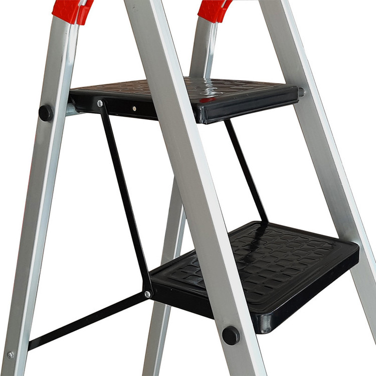 نردبان شش پله یوکسل +2 از جنس آلومینیوم فابریک و نمونه دیزاین آلمانی است. به نسبت نردبان های قدیمی یوکسل، مدل جدید +2 دارای 2 پله ی پهن در بالای نردبان می باشد و نیز ارتفاع آن 25 سانتی متر بیشتر از مدل های قبلی است که این وجه تمایز دسترسی به ارتفاع بالاتر با همان تعداد پله را میسر می سازد. همچنین طراحی 2 پله ی پهن در بالای این نردبان، ایستادن طولانی مدت در پله ی پایینی را هم برای فرد فراهم ساخته است. این نردبان علاوه بر وزن بسیار کم از استحکام بسیار بالایی نسبت به مدل های قبلی برخوردار است و همین قابلیت این محصول را از سایر محصولات مشابه متمایز کرده است. دیگر ویژگی برجسته ی این نردبان برخورداری از پله های پهن طول 12 سانتیمتری در پایین است که نه تنها به تعادل و امنیت هرچه بیشتر شما کمک می کند، بلکه به زیبایی آن نیز می افزاید و شباهت آن را به نمونههای آلمانی بیشتر میکند. وزن این محصول حدود 6 کیلوگرم با تحمل وزن 130 کیلوگرم است به طوری که هر فردی، حال چه مسن و چه خرد سال به راحتی قادر به حمل آن خواهند بود . ارتفاع این نردبان برای خانهها و فضاها با سقف بلند بسیار مناسب است و به شما این امکان را میدهد که به نحو احسنت به سقف و یا سطوح بالا دسترسی و تسلط داشته باشید. پایههای این محصول از جنس پلاستیک است و احتمال سر خوردن را به حداقل میرساند و داشتن ابعاد بزرگتر در دو طبقه فوقانی به شما تعادل و راحتی بالایی میبخشد و دچار لرزش نخواهد شد. این نردبان دارای جایگاه ابزار در بخش بالای دسته است و باعث سهولت در انجام کارهایی نظیر دریل کاری، چوب پرده زدن وکارهای فنی است. قسمت بالای نردبان دارای جایگاه تکیه گاه است و به فرد امنیت و تعادل بالایی برای ایستادن در پله ی آخر را می دهد.