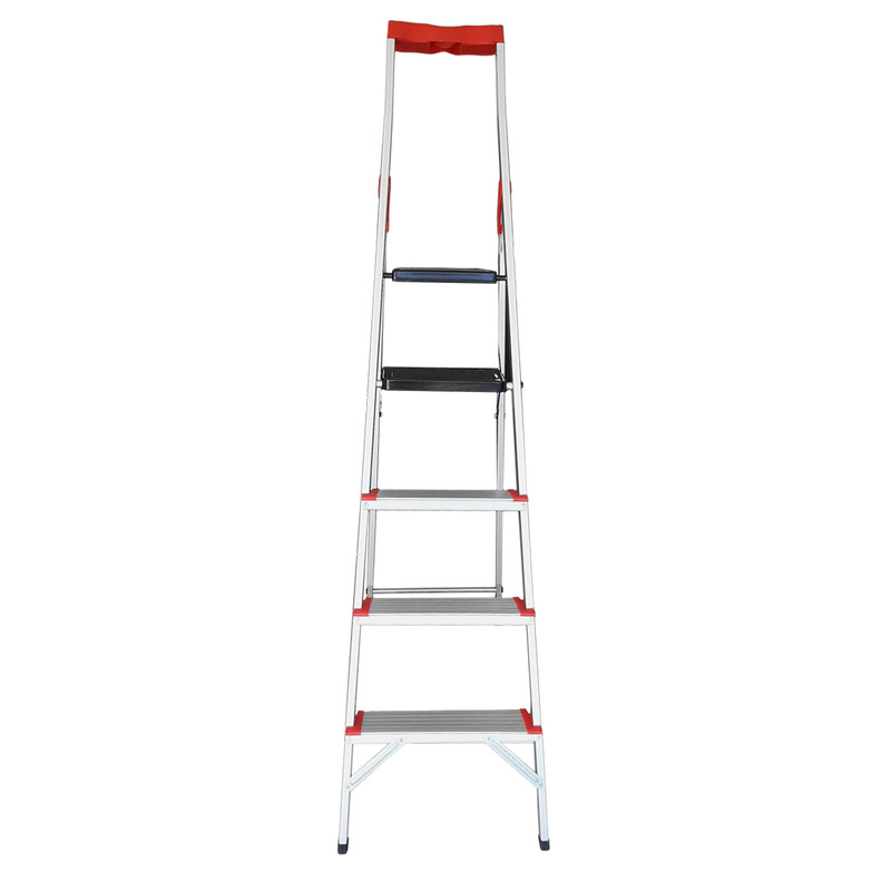نردبان پنج پله یوکسل +2 از جنس آلومینیوم فابریک و نمونه دیزاین آلمانی است. به نسبت نردبان های قدیمی یوکسل، مدل جدید +2 دارای 2 پله ی پهن در بالای نردبان می باشد و نیز ارتفاع آن 25 سانتی متر بیشتر از مدل های قبلی است که این وجه تمایز دسترسی به ارتفاع بالاتر با همان تعداد پله را میسر می سازد. همچنین طراحی 2 پله ی پهن در بالای این نردبان، ایستادن طولانی مدت در پله ی پایینی را هم برای فرد فراهم ساخته است. این نردبان علاوه بر وزن بسیار کم از استحکام بسیار بالایی نسبت به مدل های قبلی برخوردار است و همین قابلیت این محصول را از سایر محصولات مشابه متمایز کرده است. دیگر ویژگی برجسته ی این نردبان برخورداری از پله های پهن طول 12 سانتیمتری در پایین است که نه تنها به تعادل و امنیت هرچه بیشتر شما کمک می کند، بلکه به زیبایی آن نیز می افزاید و شباهت آن را به نمونههای آلمانی بیشتر میکند. وزن این محصول حدود 6 کیلوگرم با تحمل وزن 130 کیلوگرم است به طوری که هر فردی، حال چه مسن و چه خرد سال به راحتی قادر به حمل آن خواهند بود . ارتفاع این نردبان برای خانههایی حتی با سقف بلند بسیار مناسب است و به شما این امکان را میدهد که به نحو احسنت به سقف و یا سطوح بالا دسترسی و تسلط داشته باشید. پایههای این محصول از جنس پلاستیک است و احتمال سر خوردن را به حداقل میرساند و داشتن ابعاد بزرگتر در دو طبقه فوقانی به شما تعادل و راحتی بالایی میبخشد و دچار لرزش نخواهد شد. این نردبان دارای جایگاه ابزار در بخش بالای دسته است و باعث سهولت در انجام کارهایی نظیر دریل کاری، چوب پرده زدن وکارهای فنی است. قسمت بالای نردبان دارای جایگاه تکیه گاه است و به فرد امنیت و تعادل بالایی برای ایستادن در پله ی آخر را می دهد.