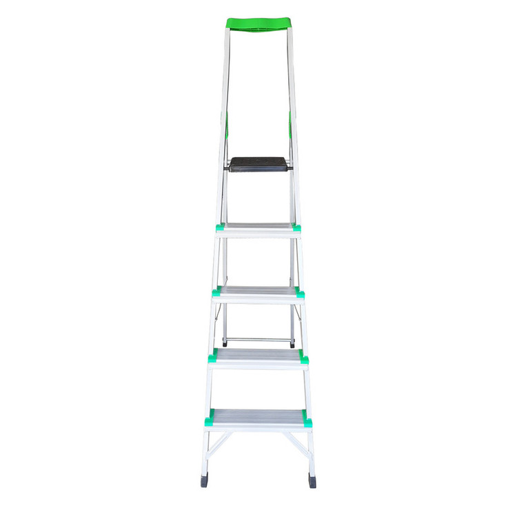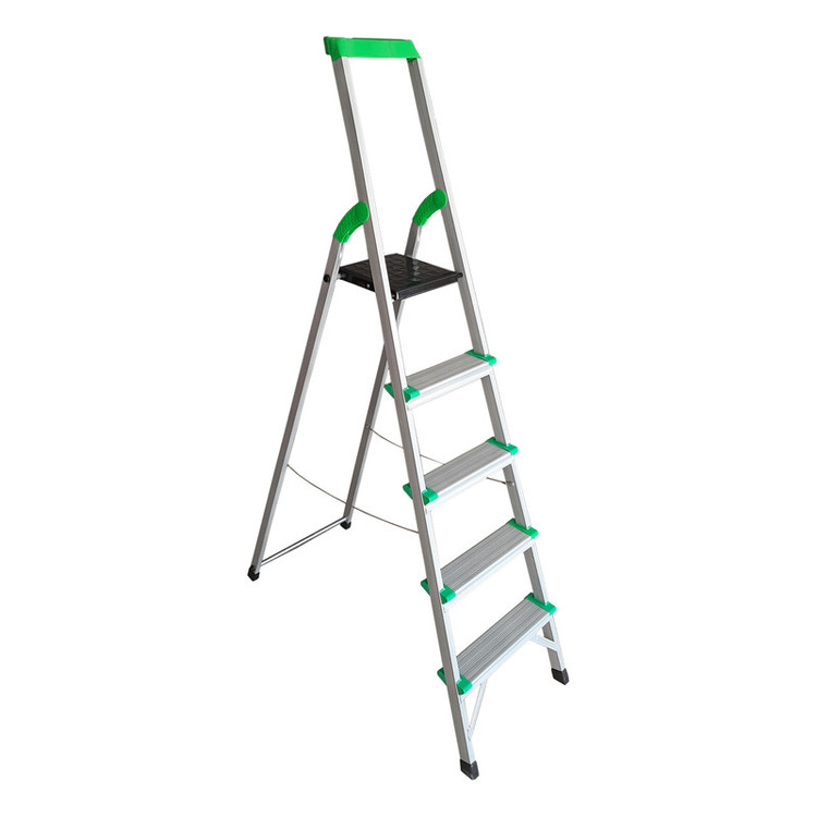 نردبان 5 پله مدل کیهان با استفاده از پروفیل مقاوم تحمل وزنی بیش از 150 کیلو را برای فرد میسر ساخته است. این نردبان نسبت به نردبان های هم رده ی خود با همین تعداد پله از بیشترین ارتفاع در پله آخر برخوردار است که ارتفاع آن در حالت باز شده از زمین تا آخرین پله معادل 135 سانتی متر می باشد. رنگ این نردبان الکترواستاتیک است و از جوش CO و از سیم فولادی در کناره های بدنه، برای استحکام بیشتر نردبان استفاده شده است. پله ی بالایی این نردبان پهن تر از سایر پله ها بوده که استفاده ی طولانی مدت را برای فرد راحت تر می سازد. بیشتر ما زمانی که از نردبان استفاده میکنیم، در صورت نیاز داشتن به ابزار مختلف یا از فردی دیگر درخواست کمک میکنیم و یا خود مجبور به پایین رفتن از نردبان میشویم. اما نردبان پنج پله کیهان با داشتن یک سینی پلاستیکی مخصوص ابزار در قسمت بالای خود، این مشکل را رفع کرده و زمان انجام کار را کاهش می دهد.