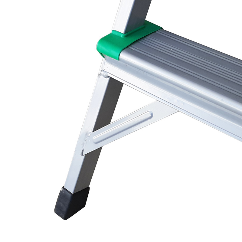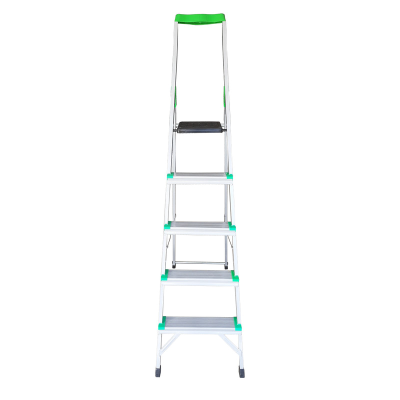 نردبان 5 پله مدل کیهان با استفاده از پروفیل مقاوم تحمل وزنی بیش از 150 کیلو را برای فرد میسر ساخته است. این نردبان نسبت به نردبان های هم رده ی خود با همین تعداد پله از بیشترین ارتفاع در پله آخر برخوردار است که ارتفاع آن در حالت باز شده از زمین تا آخرین پله معادل 135 سانتی متر می باشد. رنگ این نردبان الکترواستاتیک است و از جوش CO و از سیم فولادی در کناره های بدنه، برای استحکام بیشتر نردبان استفاده شده است. پله ی بالایی این نردبان پهن تر از سایر پله ها بوده که استفاده ی طولانی مدت را برای فرد راحت تر می سازد. بیشتر ما زمانی که از نردبان استفاده میکنیم، در صورت نیاز داشتن به ابزار مختلف یا از فردی دیگر درخواست کمک میکنیم و یا خود مجبور به پایین رفتن از نردبان میشویم. اما نردبان پنج پله کیهان با داشتن یک سینی پلاستیکی مخصوص ابزار در قسمت بالای خود، این مشکل را رفع کرده و زمان انجام کار را کاهش می دهد.